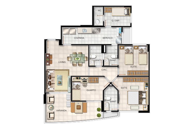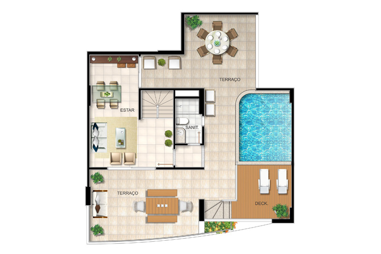 Em atenção à lei 4591/64 informamos que os pisos, móveis, equipamentos, acessórios decorativos e vegetação têm caráter meramente ilustrativo
